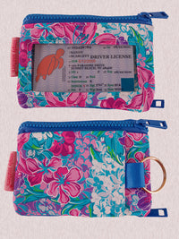 This small ID wallet is perfect for on the go, or to throw in your bag and keep all your essentials, cash, cards and keys in one place. Featuring a gold keyring, two zippered pockets and interior entry ID window.